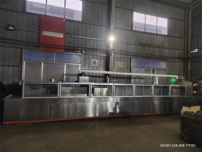 工藝流程:上料→退磁→高壓噴淋粗洗→超聲波清洗→高壓噴淋精洗→烘干→下料