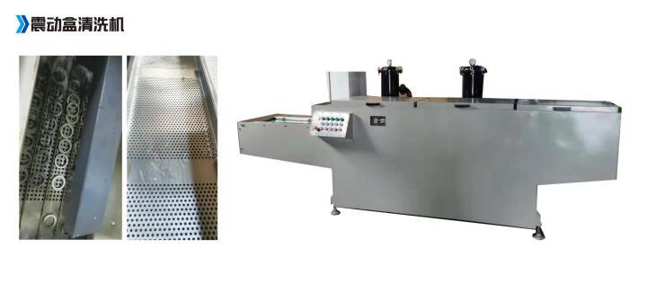 震動盒清洗設備的特點是傳送方式,震動盒折彎-體成型,針對一些小工件。 例如:各種小螺絲,8類軸承墊片,各種薄片,用網帶機型容易卡網帶。這就體現出震動盒的優勢出來,U型槽一體成型,兩側沒有縫隙,靠震動頻率向前輸送。
